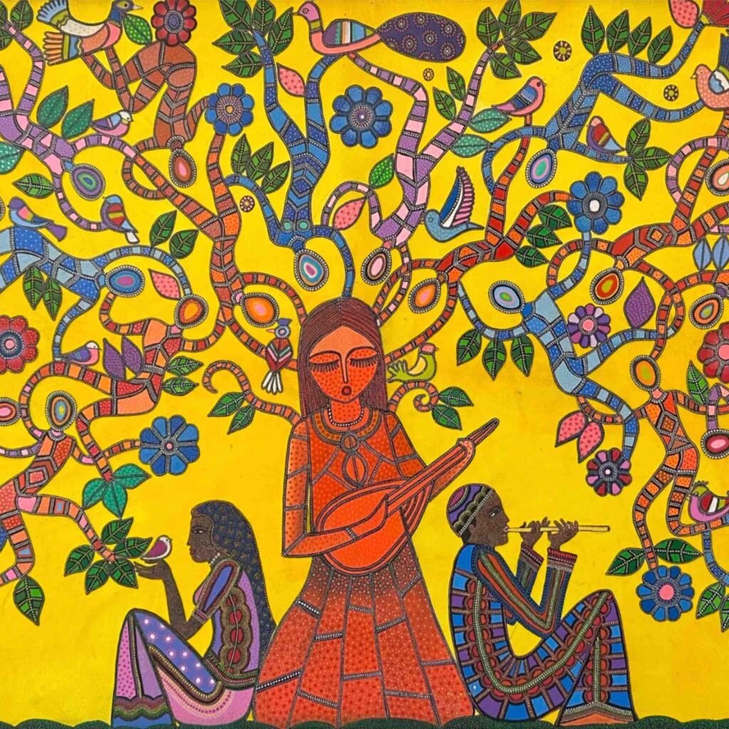 Spécialisé en ethno-peinture, Trifis puise dans l’héritage nomade, les croyances anciennes, les récits oraux et la mémoire collective. Son travail, riche et inventif, s’inspire autant de l’environnement fauve du Haouz que des traditions artisanales et des archétypes transmis par ses ancêtres. Il compose des univers denses, où se mêlent figures humaines, animaux fabuleux, formes végétales et signes totémiques.