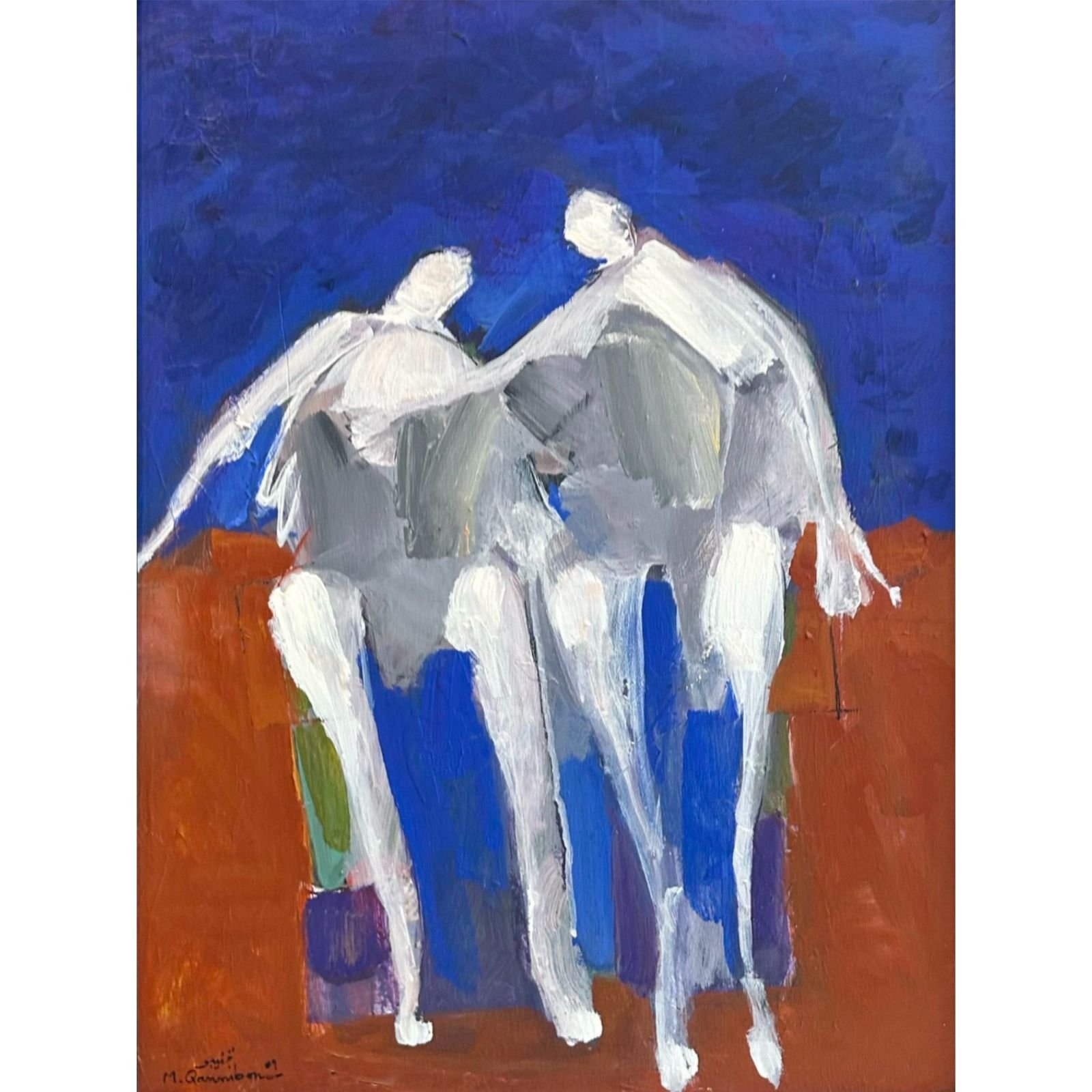 Amina Benbouchta is a painter born in 1963 in Casablanca. After her degree in anthropology in Montreal, she continued courses in various drawing, lithography and engraving workshops in Paris.