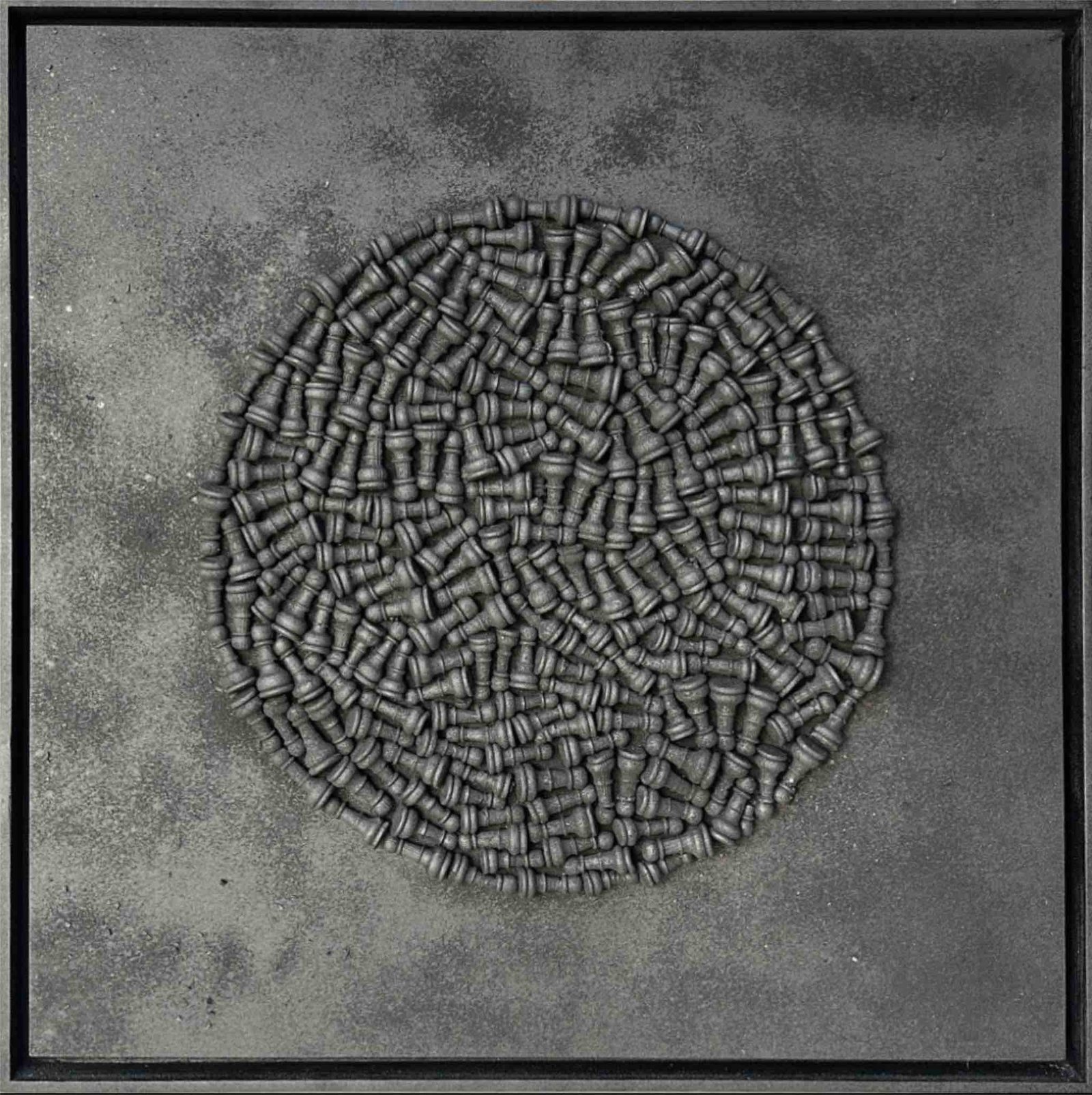 Symbolism plays a significant role in his visual language. The game of chess, for instance, recurs as a metaphor for power dynamics, strategy, solitude, and decision-making. His reflections are also deeply influenced by Arabic writing and poetry, which, even when not explicitly visible, permeate the conceptual structure of his work. Through this interplay of mediums, symbols, and cultural references, EL BISSAOUI crafts a body of work that invites viewers to rethink mechanisms of manipulation and the forces shaping collective consciousness.