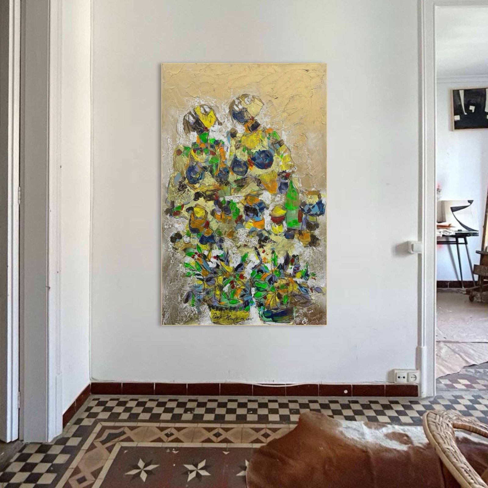 L’art de Benjkan opère une rencontre subtile entre modernité et tradition. Qu’il explore l’abstraction ou la figuration, son travail se distingue par la dynamique des formes et une palette chromatique vive et lumineuse. Ses compositions, structurées sous l’emprise de la lumière, répondent à un jeu rigoureux entre surfaces éclairées, contrastes et densités. La figure, souvent esquissée ou approximée, glisse vers l’abstraction : un choix délibéré qui vise à purifier le visible tout en en renforçant l’intensité.