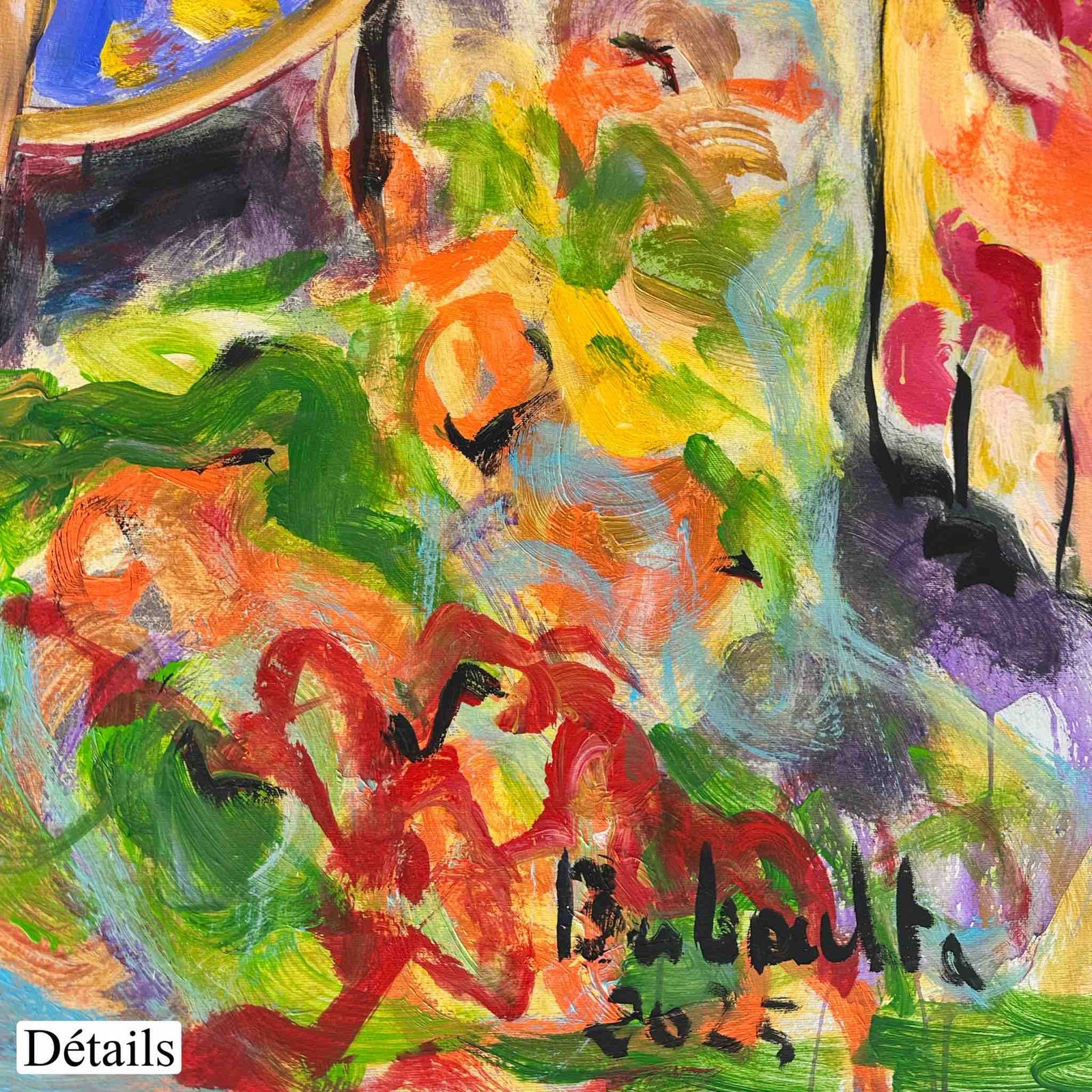 Peinture sur toile sur chassis, Acrylique, feuille d’argent, Œuvre signée à la main et réalisée en 2025.